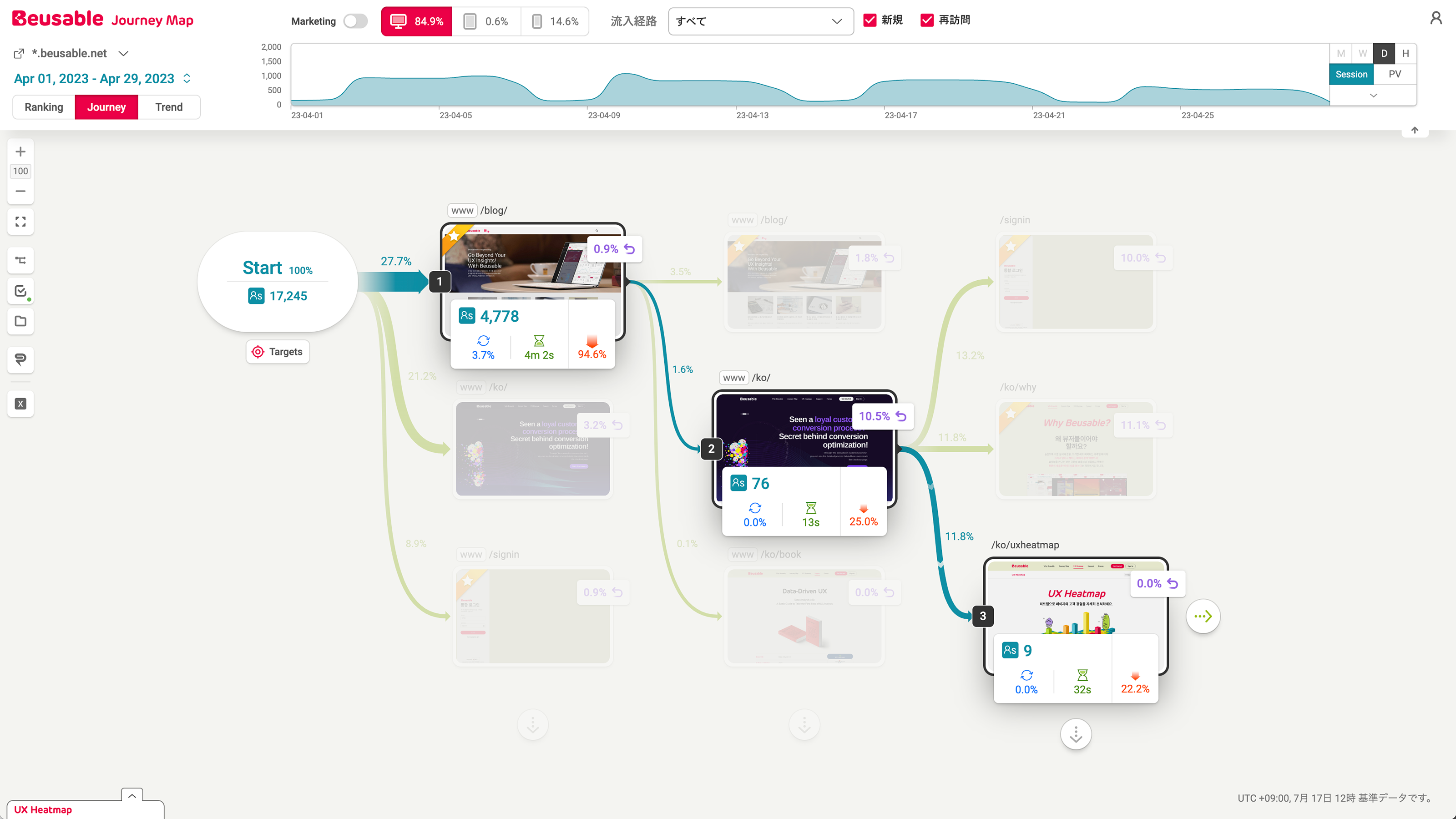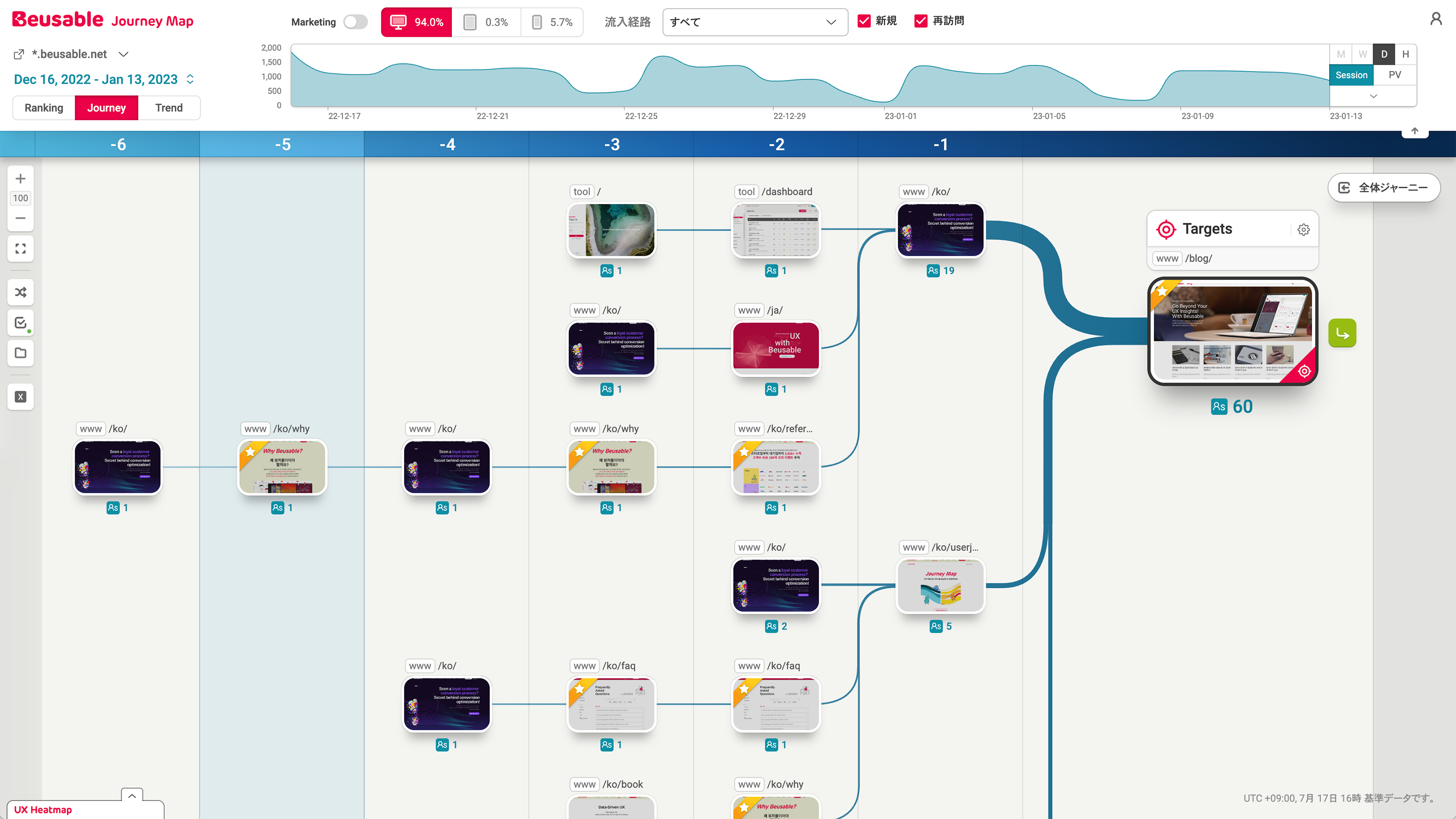 重要なページに遷移する前後のカスタマージャーニーを分析して、戦略を考案し、仮説を立案できます。